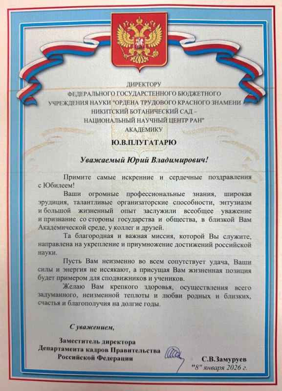 ПОЗДРАВЛЕНИЕ ОТ ЗАМЕСТИТЕЛЯ ДИРЕКТОРА ДЕПАРТАМЕНТА КАДРОВ ПРАВИТЕЛЬСТВА РОССИЙСКОЙ ФЕДЕРАЦИИ
