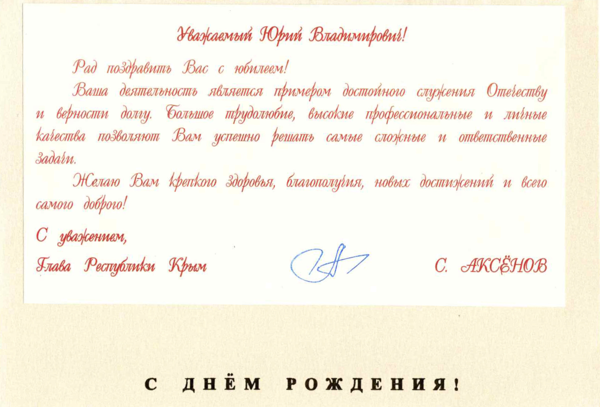 ПОЗДРАВЛЕНИЕ ОТ ГЛАВЫ РЕСПУБЛИКИ КРЫМ