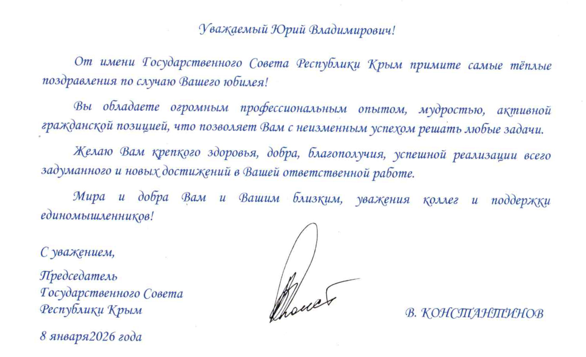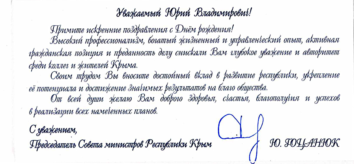 ПОЗДРАВЛЕНИЕ ОТ ПРЕДСЕДАТЕЛЯ СОВЕТА МИНИСТРОВ РЕСПУБЛИКИ КРЫМ