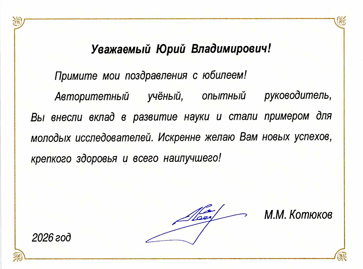 ПРАВИТЕЛЬСТВЕННАЯ ТЕЛЕГРАММА ОТ ЗАМЕСТИТЕЛЯ МИНИСТРА НАУКИ И ВЫСШЕГО ОБРАЗОВАНИЯ РОССИЙСКОЙ ФЕДЕРАЦИИ