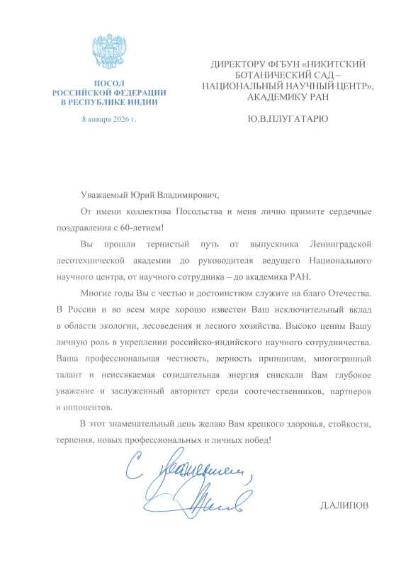 ПОЗДРАВЛЕНИЕ ОТ ПОСОЛЬСТВА РОССИЙСКОЙ ФЕДЕРАЦИИ В РЕСПУБЛИКЕ ИНДИИ